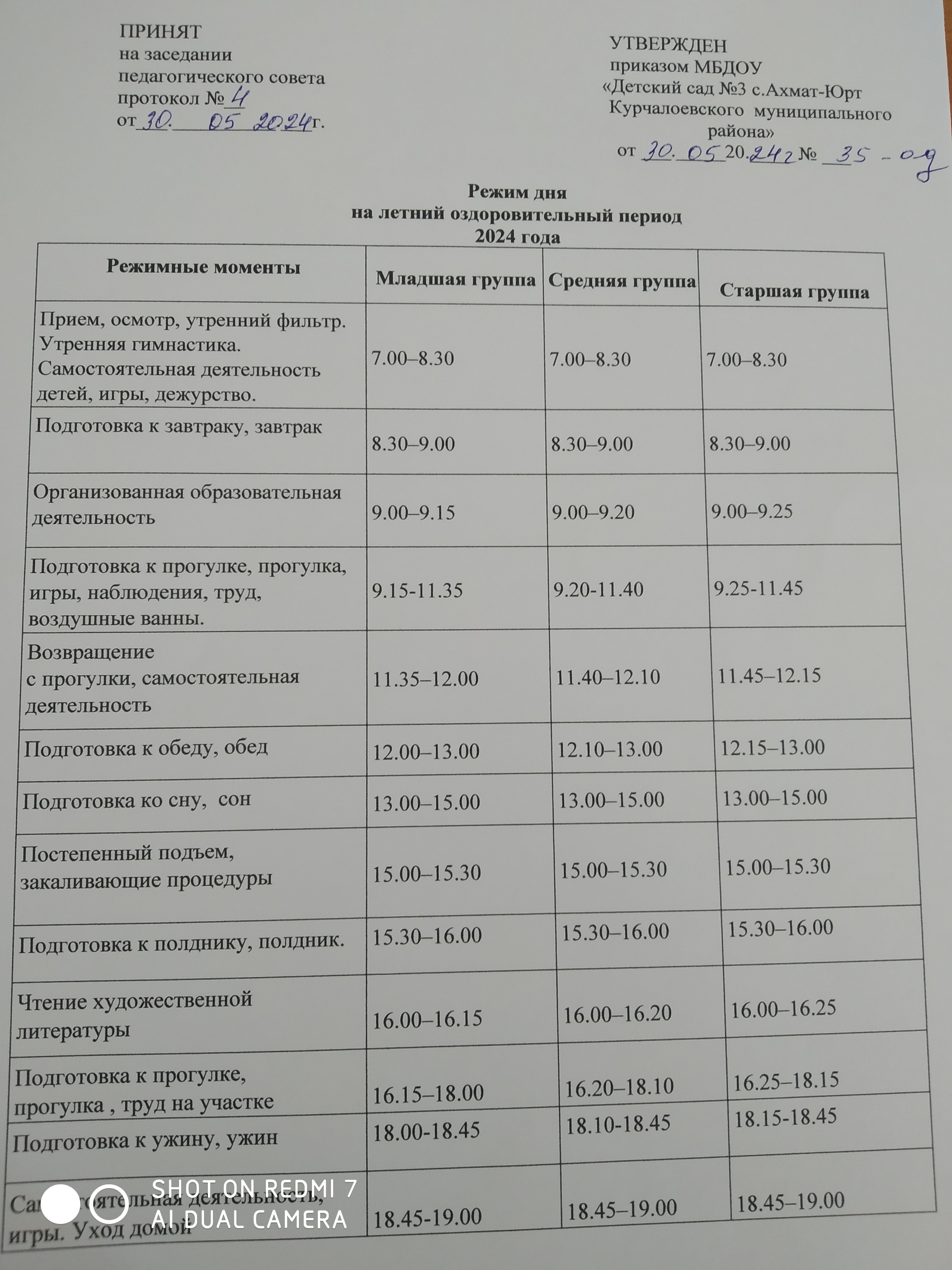 расписание ЛОП в МБДОУ Детский сад √3 с. Ахмат-Юрт