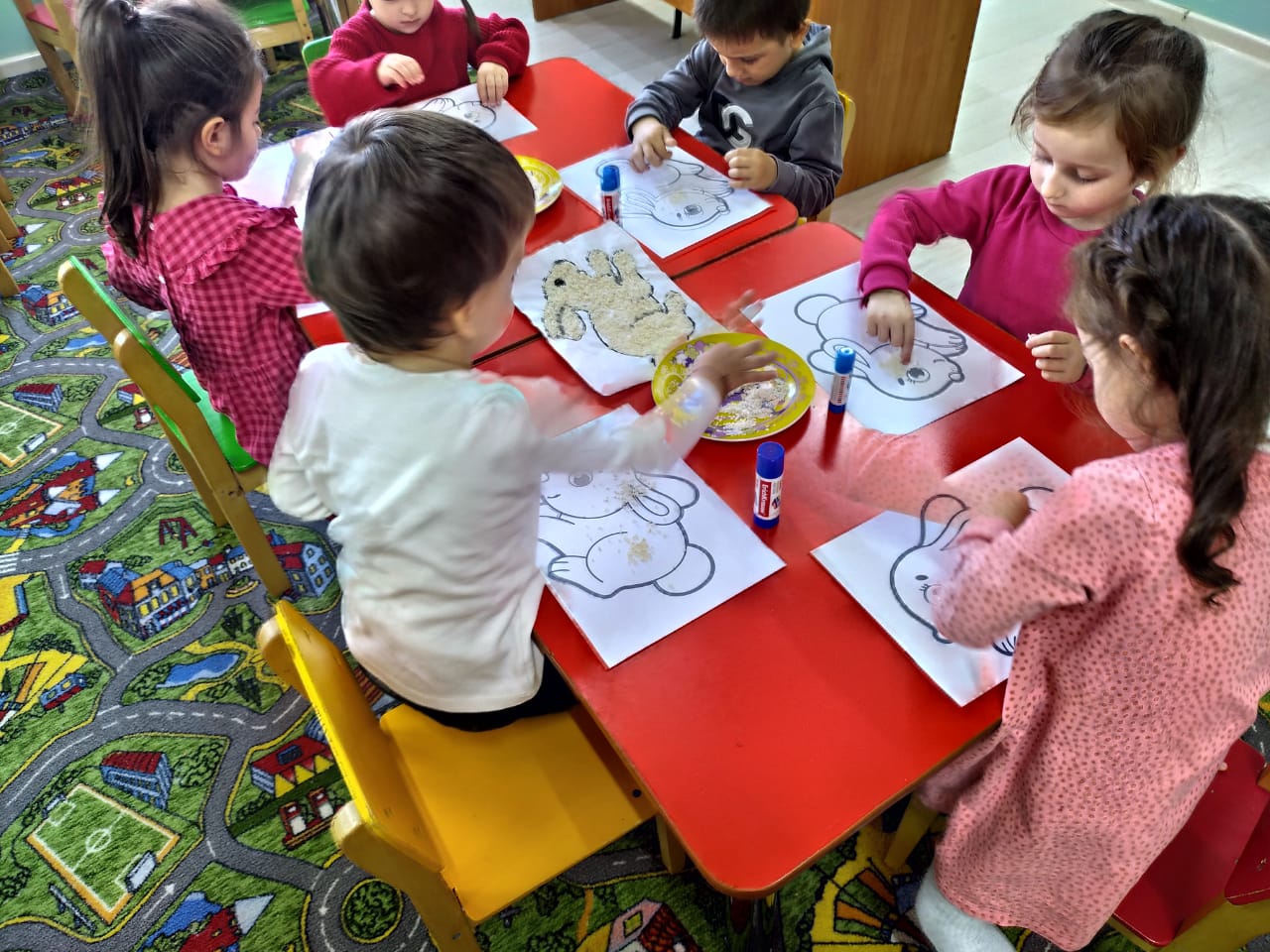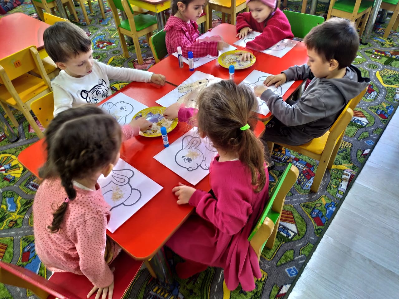 Цель: Дать детям представление о нетрадиционных формах аппликации, развивать мелкую моторику, воображение детей, создать положительный эмоциональный настрой.