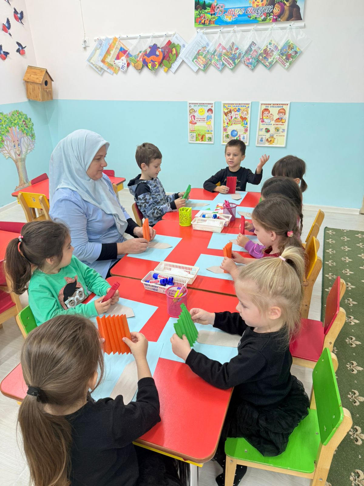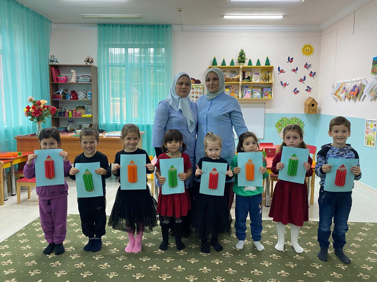В рамках реализации национального проекта «Образование» в МБДОУ «Детский сад № 3 с. Ахмат-Юрт Курчалоевского района» воспитатели средних групп «Чебурашка»,«Колобок», А.Б. Хаджиева и Х.Р. Хамбулатова, провели мастер-класс «Цветные карандаши» по объёмной аппликации с элементами конструирования из бумаги.